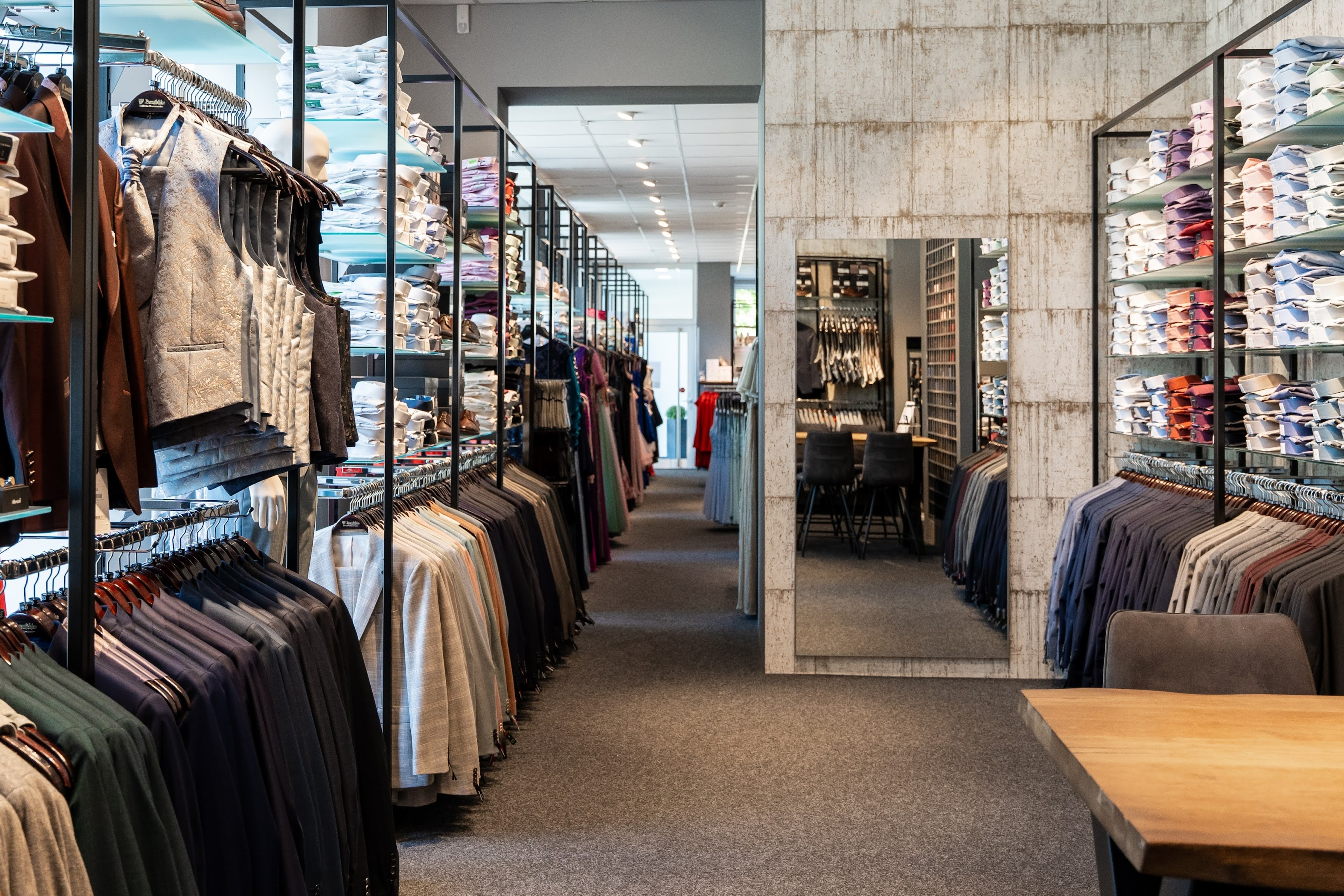 In der großen Herrenabteilung bieten wir eine exklusive Auswahl an Business- und Hochzeitsmode von Kopf bis Fuß an. Einen schicken Anzug zur Party oder für den modernen Bräutigam im Vintage Stil. Dabei setzen wir auf renommierte Hersteller wie Digel, Eterna, Roy Robson, Olymp oder Wilvorst. Zu jedem Outfit bieten wir für Sie und Ihn die passenden Accessoires.