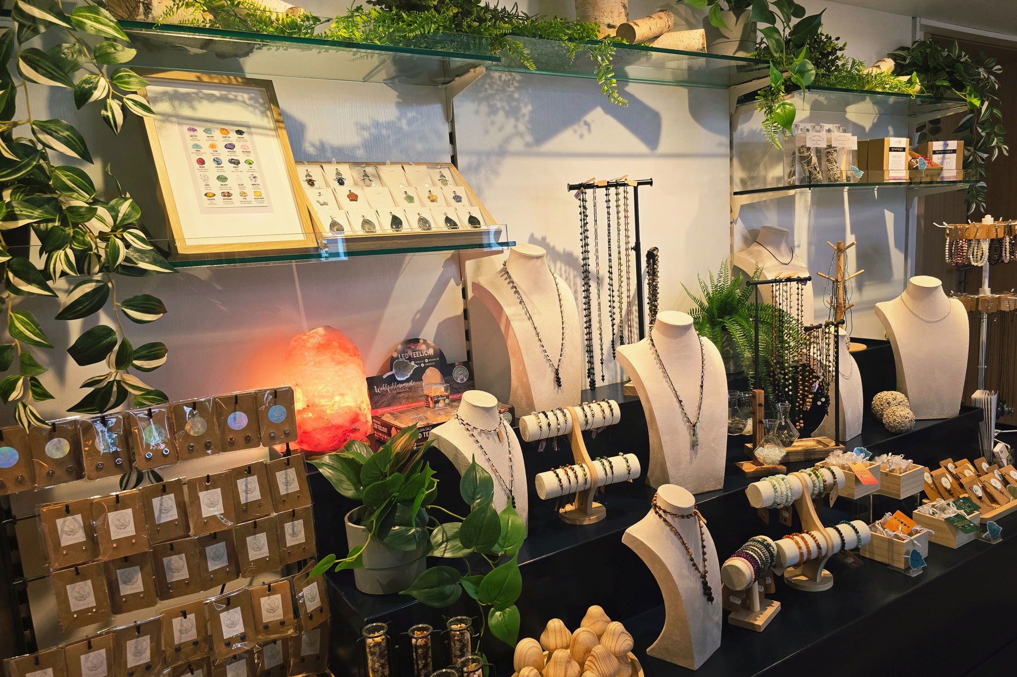 Zusätzlich gibt es bei mir ein Areal für Besonderheiten, einen Verkaufsraum mit kleinen und großen Schätzen, für Sie selbst oder als liebevolles Geschenk. Von Heilsteinen, Pendeln, Düften und Räucherwaren über Kerzen mit Kristallen bis hin zu besonderen Schmuckstücken und Kleinigkeiten – das Angebot variiert des Öfteren und lädt zum Stöbern ein.